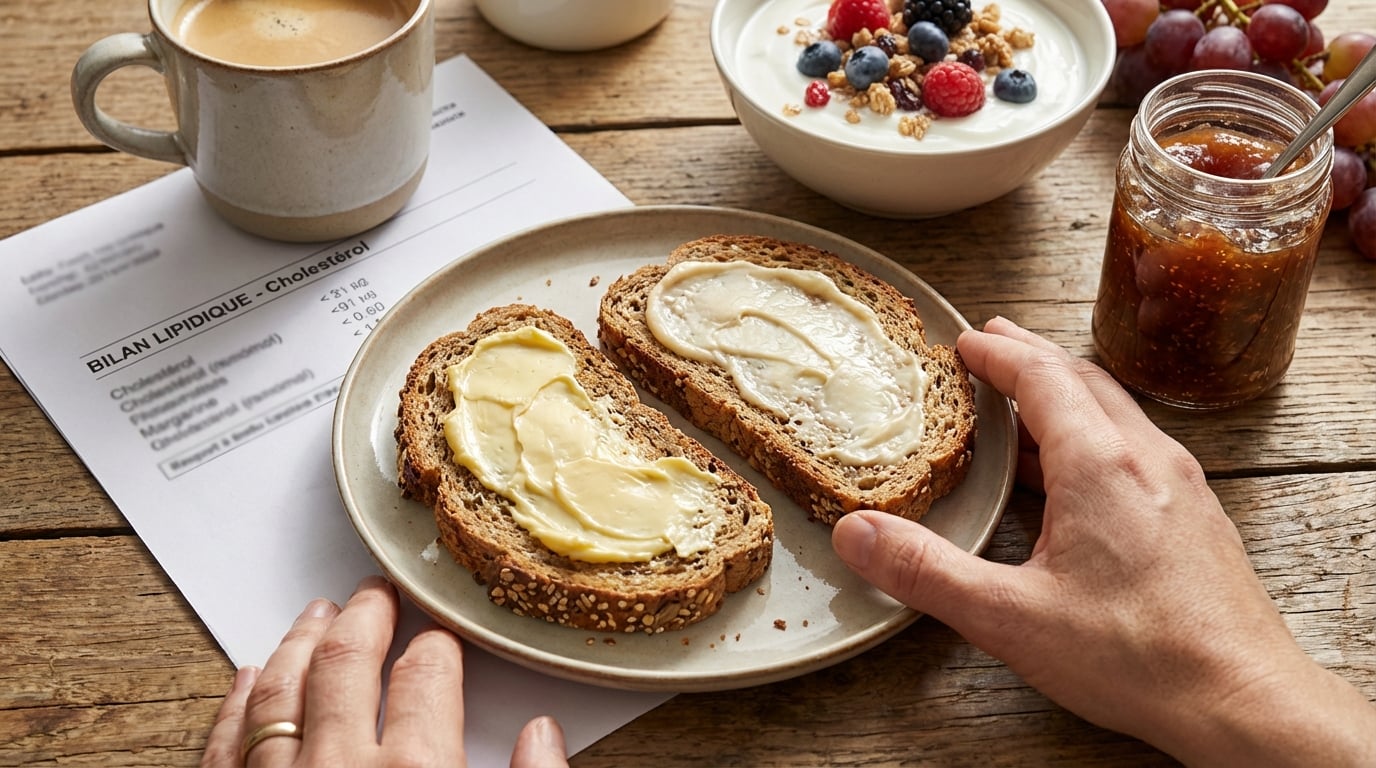 In France, the morning tartine is a ritual. A slice of bread, something to spread on it, a cup of coffee — and repeat, day after day. That repetition is exactly what makes the butter-versus-margarine question worth taking seriously. A small daily habit, compounded over years, has a measurable impact on cardiovascular health.